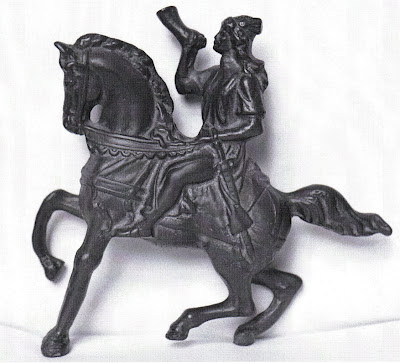 Norocul face ca, pe malul apusean al Lacului Sărățuica, adică exact pe locul unde S-au născut Gemenii Divini, să fie descoperită, în anul 1985, o statuetă ecvestră, de bronz aurit, reprezentându-L pe Eroul Sfânt al Geților. Viteazul are în mâna dreaptă cornul de Crainic Ceresc, iar cu stânga ține frâul calului. La șoldul stâng poartă o sabie mare, dreaptă. Are mustață și plete, așa cum e descris în ”Miorița”.